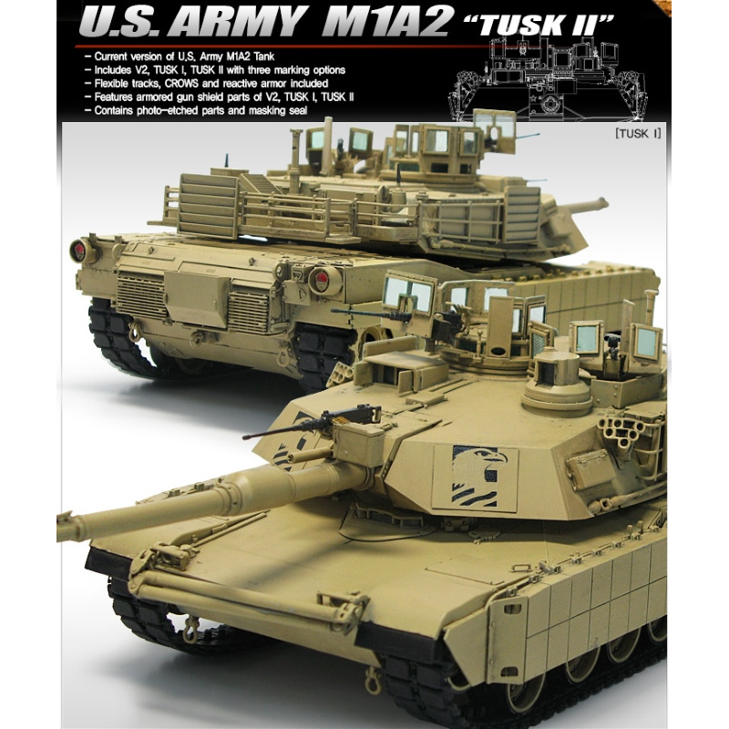 Plastik-Modellbausatz für ein Panzer-Modell des US Army MBT M1A2 TUSK II