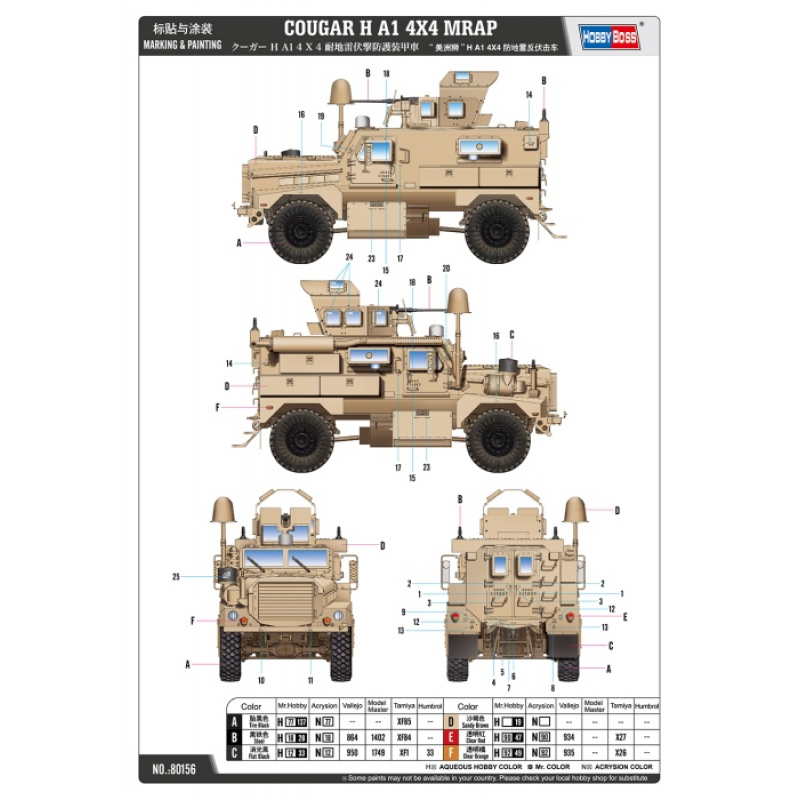 Plastik-Modellbausatz für ein Militärmodell des US-amerikanischen Cougar H A1 4x4 MRAP