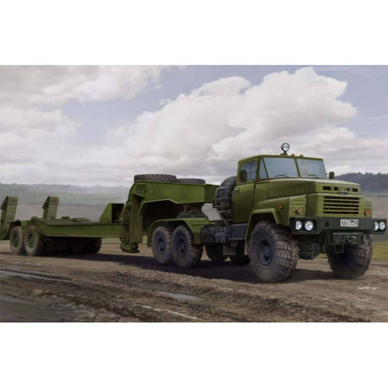Plastik-Modellbausatz für ein Militärmodell des russischen KrAZ-260B mit Panzer-Tieflader MAZ/ChMZAP-5247G