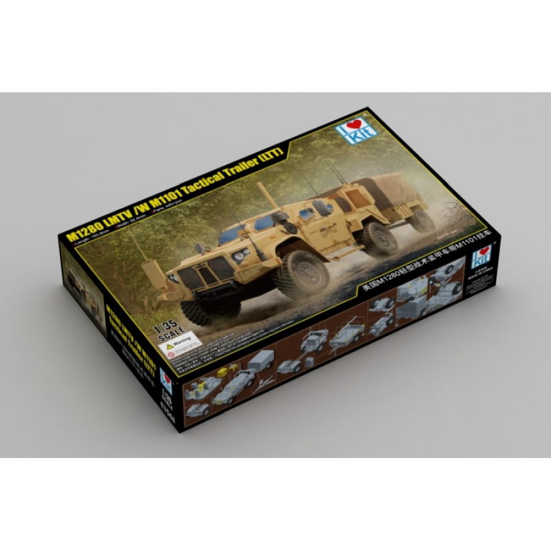 Plastik-Modellbausatz für ein U.S. Militärmodell des M1280 LMTV mit M1101 Anhänger