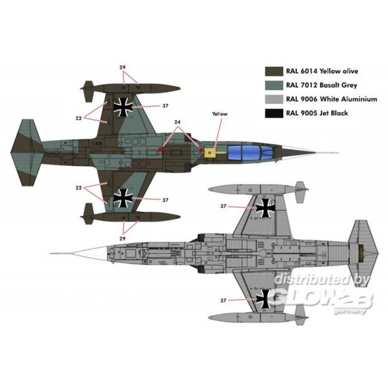 Plastik-Modellbausatz für ein Flugzeug-Modell der F-104G Starfighter in der Ausführung der Deutschen Luftwaffe und Marine