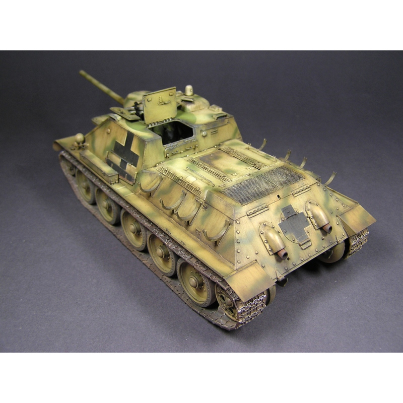 Plastik-Modellbausatz für ein WWII Panzer-Modell des russischen Sturmgeschütz SU-85, hier als deutsche Beuteversion incl. 5 Crew-Figuren