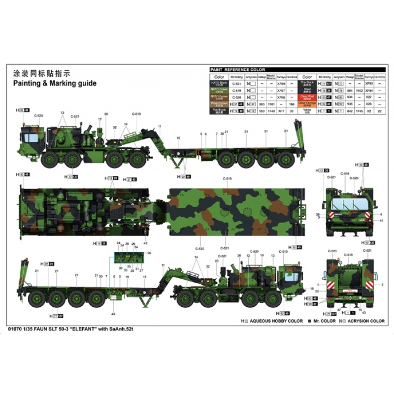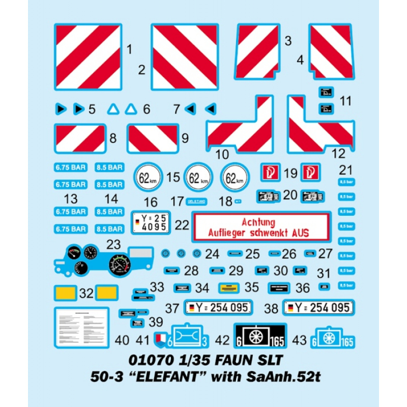 Plastik-Modellbausatz für ein Militärmodell des deutschen Schwerlasttransporters FAUN SLT-50-3 'Elefant' mit SaAnh.52t