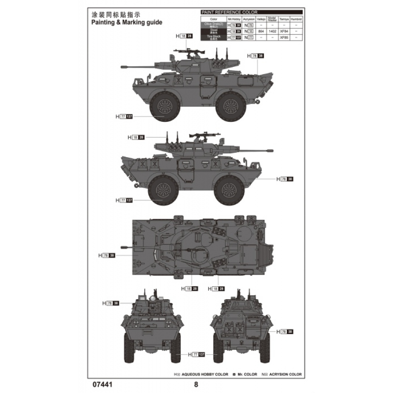 Plastik-Modellbausatz für ein U.S. Militärmodell des V-150 Commando mit 20mm Kanone